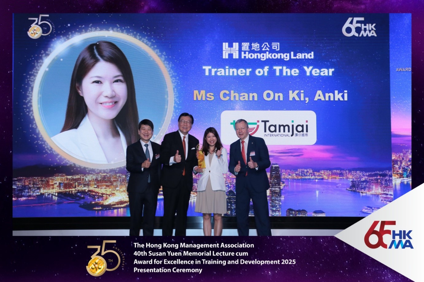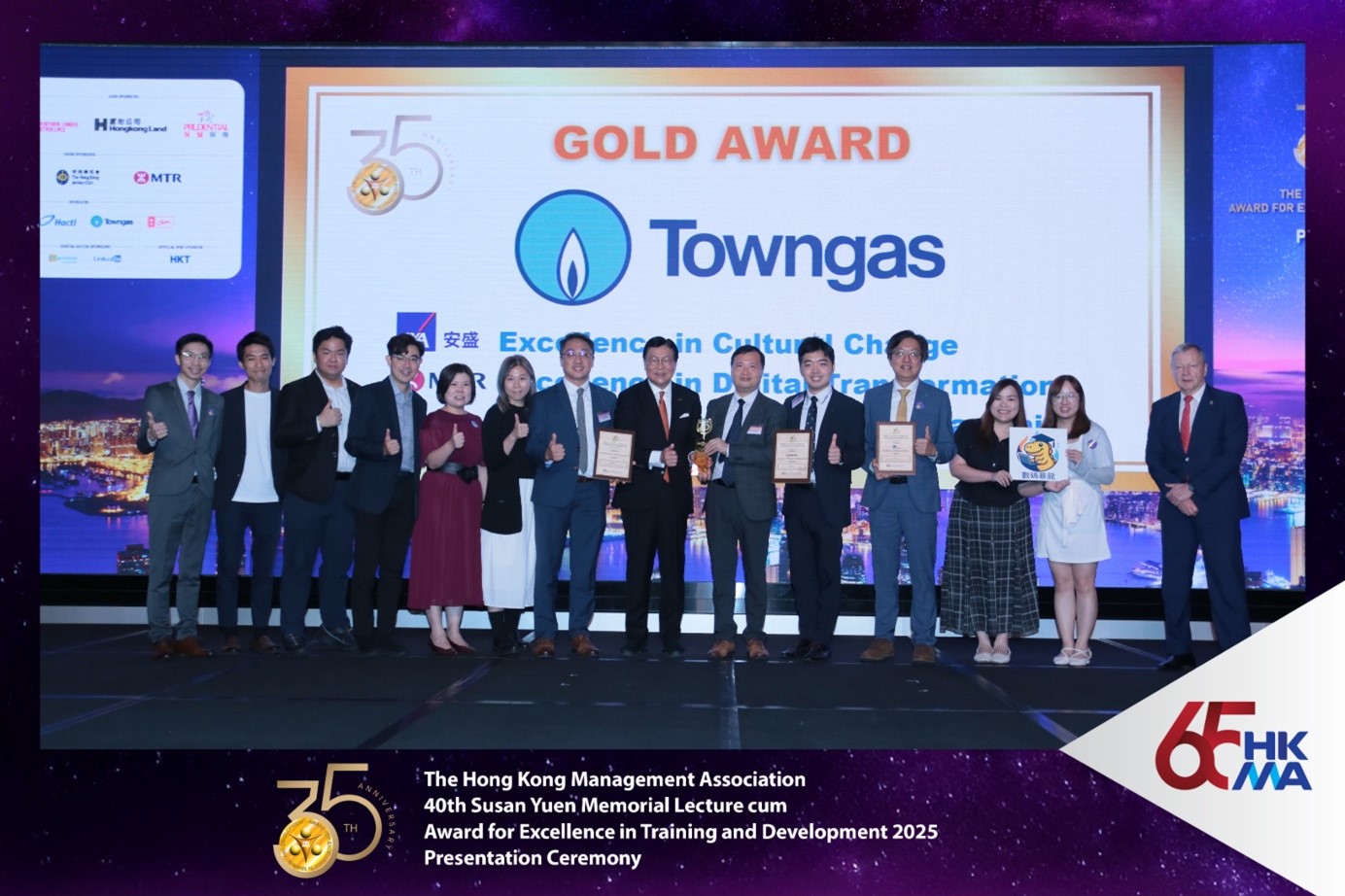 「2025年HKMA最佳管理培訓及發展獎」頒獎典禮亦同時舉行,並由主禮貴賓香港貿易發展局主席馬時亨教授GBS JP; 管協主席應家柏教授 GBS JP; 榮譽主席彭耀佳博士; 2025年最佳管理培訓及發展獎籌委會主席鄭惠貞女士太平紳士; 管協理事會委員陳豪賢先生、陳榮聲先生、林智剛先生、李舜兒女士、李惠光先生、梁偉堅先生、梁國強先生、黃紹基教授、黃光耀先生 MH及任景信先生頒發證書和獎座予「培訓及發展計劃獎項」及「個人獎項」的得主,得獎名單如下﹕