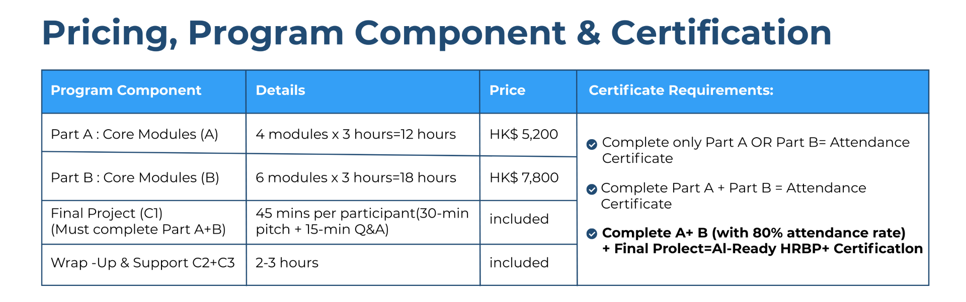 The AI-Ready HRBP+ Certification Programme is the first cross-border HRBP qualification recognised across Guangdong, Hong Kong, and Macau, equipping participants with: