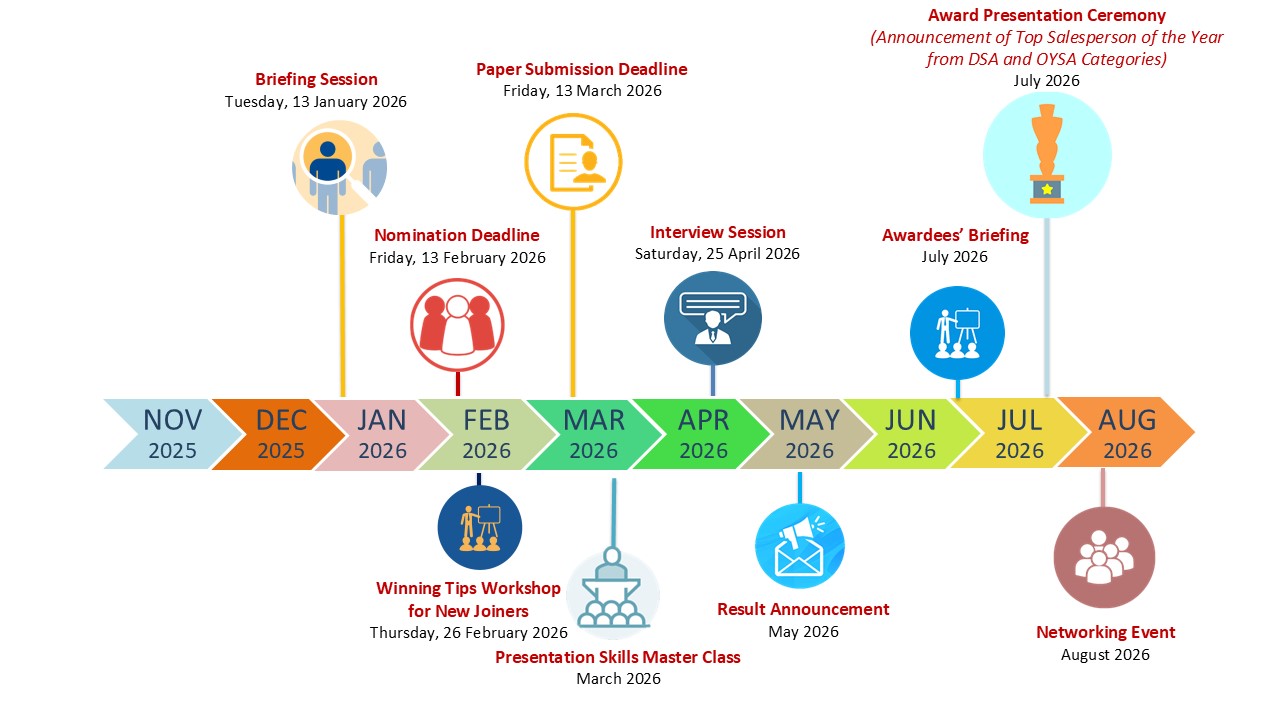 - On July 2026, all awardees will have to attend a Presentation Ceremony to be held at the Hong Kong Convention and Exhibition Centre where awardees will receive their trophies for the DSA and the OYSA.
